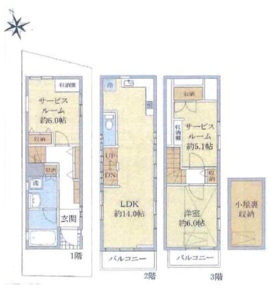 | 延べ面積 | バルコニー方向 | ||