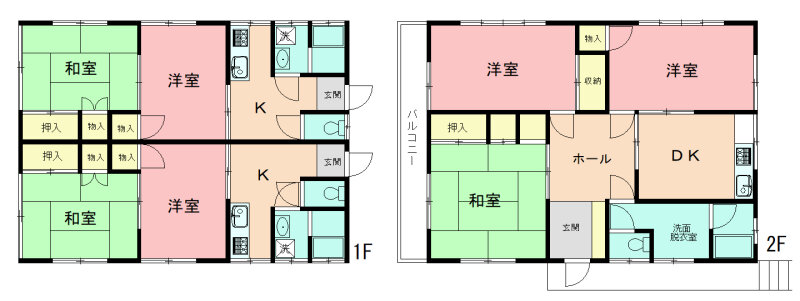 | 延べ面積 | バルコニー方向 | ||