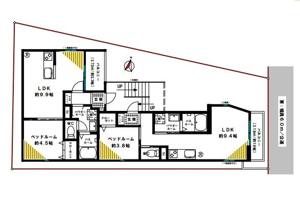 | 延べ面積 | バルコニー方向 | ||