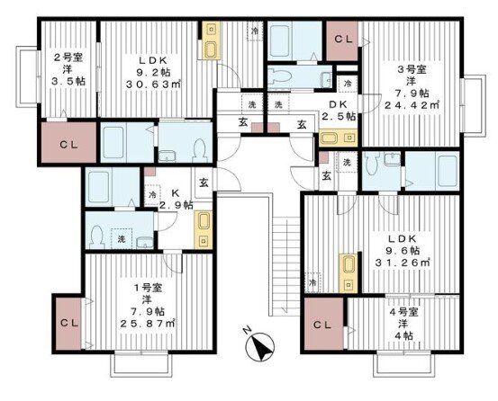 | 延べ面積 | バルコニー方向 | ||