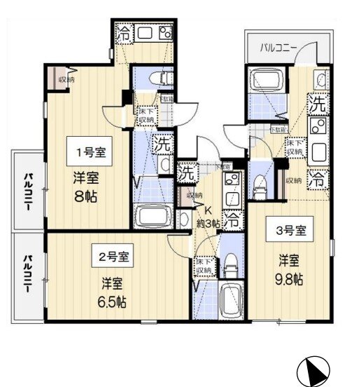 | 延べ面積 | バルコニー方向 | ||